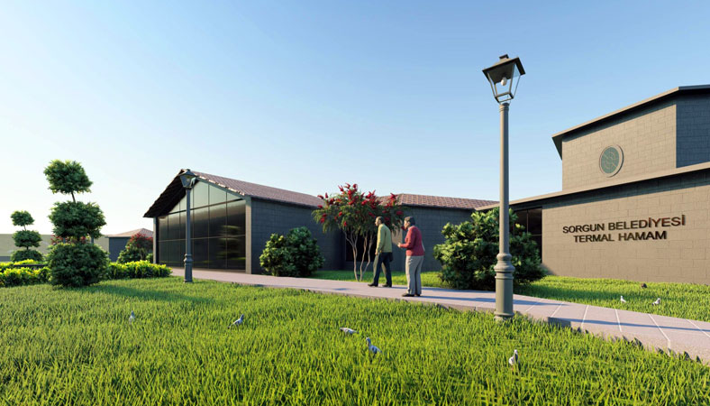 Sorgun Belediyesi tarafından yapılması planlanan Termal Hamam Projesi, modern yapısı ve geniş sosyal donatı alanlarıyla dikkat çekiyor.